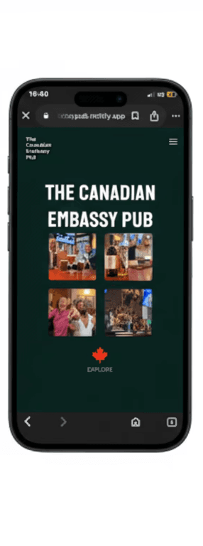 The Canadian Embassy Pub is a Canadian-style pub in Paris. The project focused on modernizing its online presence while capturing the pub’s warm, friendly atmosphere and making key information easy to access.