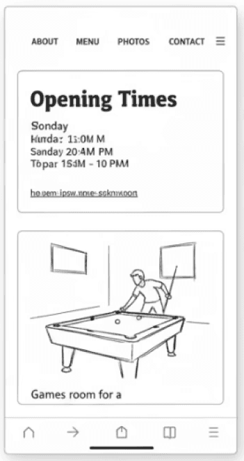 Prioritized opening hours, menu, and events above the fold based on common pub-search behavior